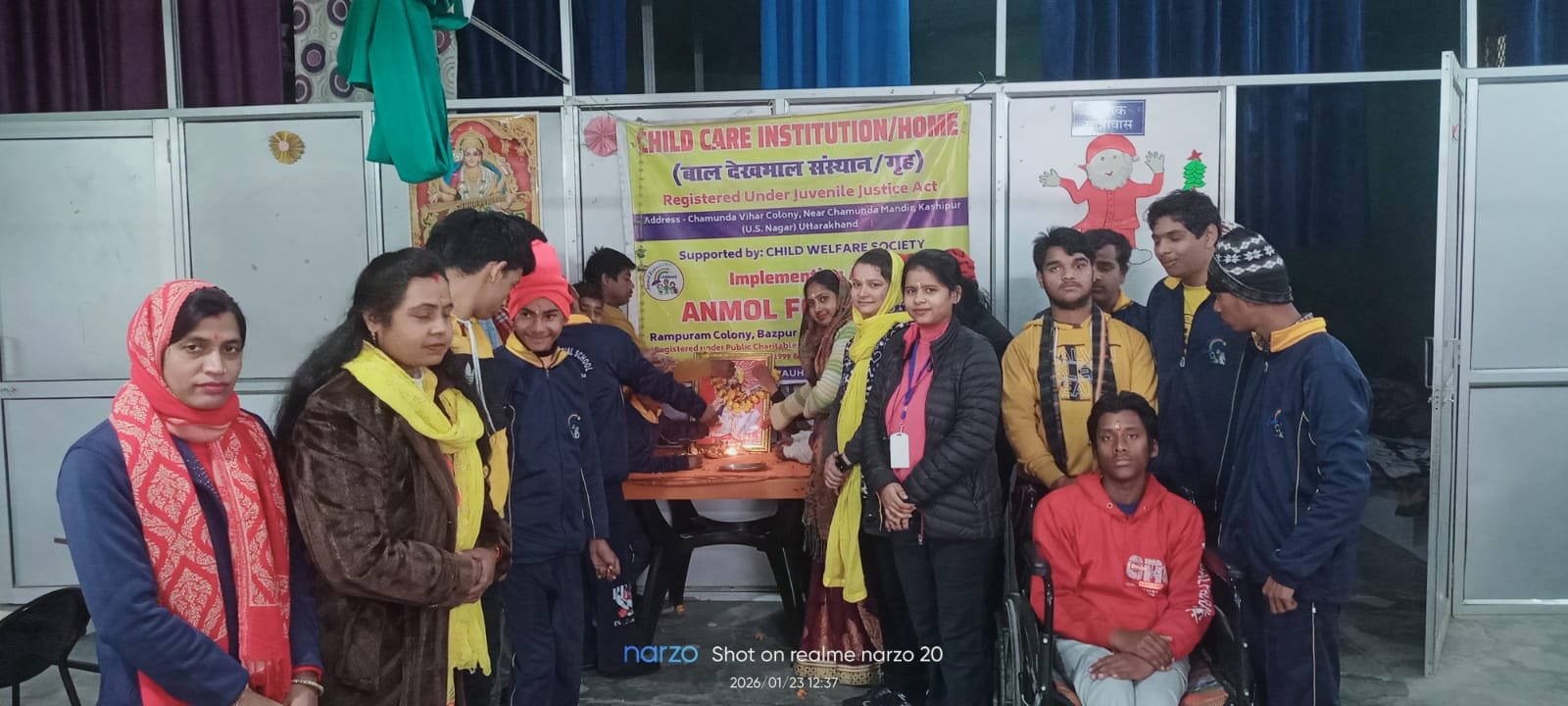काशीपुर। दिव्यांग बच्चों ने बसंत पंचमी के अवसर पर किया मां सरस्वती जी का पूजन जिला प्रोबेशन विभाग उधम सिंह नगर और जिला बाल कल्याण समिति उधम सिंह नगर के निर्देशानुसार अनमोल फाउंडेशन काशीपुर द्वारा दिव्यांग बच्चों का आवासीय बाल देखरेख संस्थान पिछले 3 सालों से चामुंडा विहार कॉलोनी में संचालित किया जा रहा है। आज बसंत पंचमी के शुभ अवसर पर सभी दिव्यांग बच्चों ने मां सरस्वती की पूजा अर्चना की इस मौके पर इस संस्थान की मुख्य कार्यकारी अधिकारी श्रीमती मीनाक्षी चौहान ने बताया की बसंत पंचमी बसंत ऋतु के आगमन का प्रतीत है और यह देवी सरस्वती जी को समर्पित है जो ज्ञान विद्या और कल की देवी है इस शुभ दिन ज्ञान रचनात्मक और आत्मज्ञान के लिए देवी की पूजा करते हैं सभी बच्चों को मां सरस्वती के चरणों में पुष्प अर्पित करके सभी को प्रसाद वितरित किया आज इस मौके पर श्री सतीश कुमार चौहान नोडल अधिकारी जिला दिव्यांग पुनर्वास केंद्र उधम सिंह नगर, श्रीमती हेमलता रेखा चित्र सागर किरण रीना शर्मा रुचिता वाला सचिन कुमार सिमरन शीतल, पूनम चौहान लता निधि कंचन ममता आसिफ़ और दिव्यांग बच्चे उपस्थित रहे