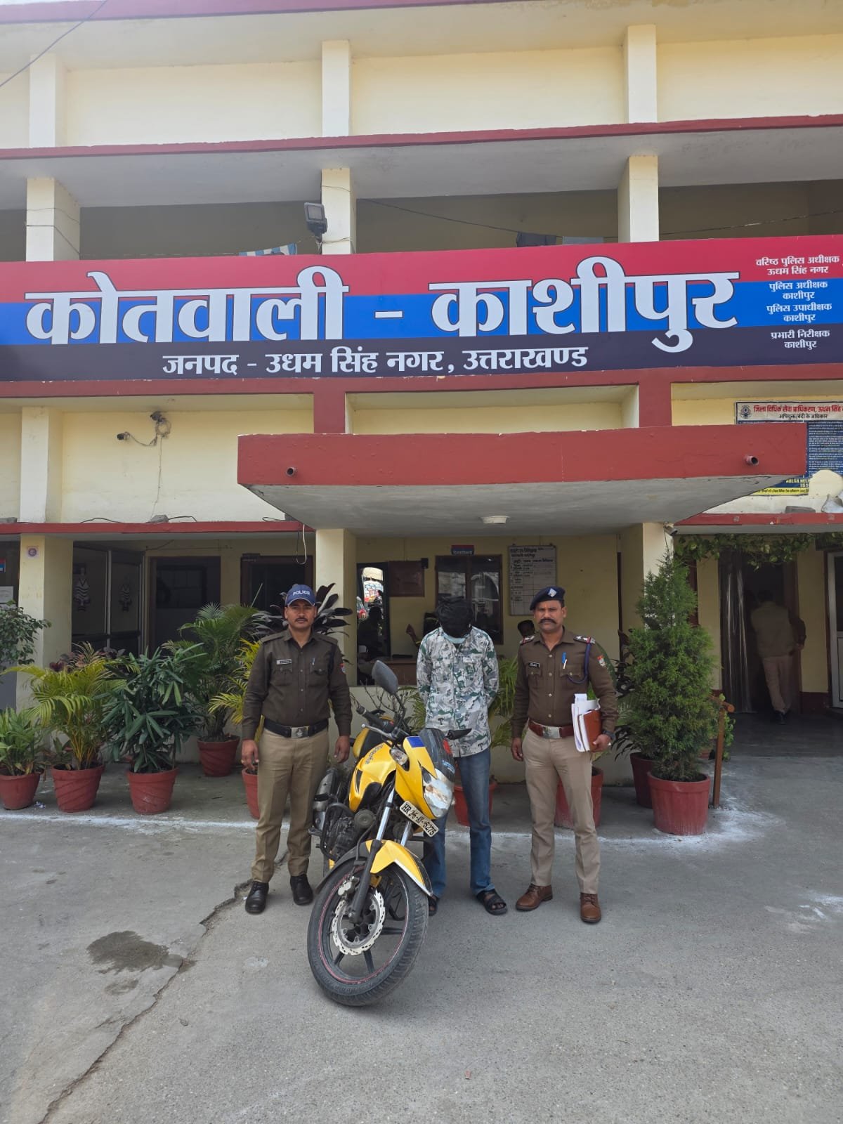 दिनांक 22//2/2026 को वादी मुकदमा श्री प्रीतम सिंह पुत्र पूरन सिंह निवासी काशीपुर थाना काशीपुर जनपद उधमसिंहनगर की मोटर साइकिल चोरी की तहरीर के आधार पर कोतवाली काशीपुर पर FIR नंबर 64/2026 धारा 303(2) बनाम अज्ञात चोर पंजीकृत किया गया था। पुलिस द्वारा तत्काल सुरागरसी पतारसी एवं सीसीटीवी कैमरे की मदद से अज्ञात चोर को 24 घंटे से कम समय में तलाश कर मय चोरी की मोटर साइकिल के अभियुक्त *सुजल पुत्र संजू निवासी पक्का कोर्ट काशीपुर को मय मोटर साइकील no HR. 26AY.5275 के गिरफ्तार किया गया अभियुक्त शातिर चोर है जिसके विरुद्ध तथा थाना काशीपुर जनपद उधमसिंहनगर में पूर्व से चोरी के मुकदमे पंजीकृत है। अभियुक्त के विरुद्ध वैधानिक कार्यवाही कर माननीय न्यायालय पेश किया जा रहा है।
